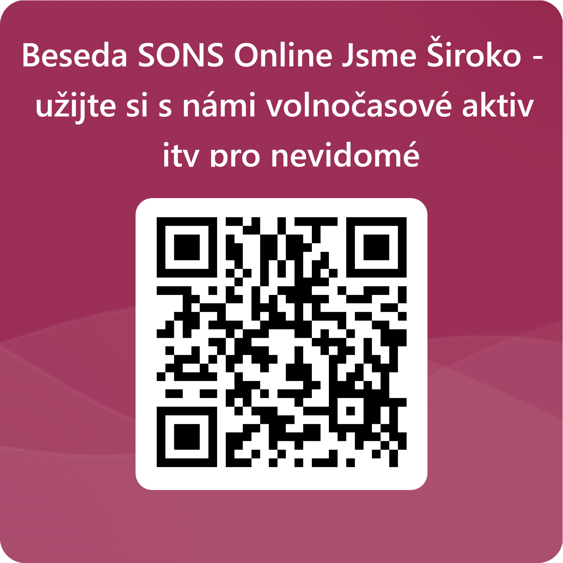 Vážení přátelé, zdravím Vás na začátku listopadu s informacemi o následujících SONS Online setkáních: * již v pátek 14. listopadu od 15:00 hodin začne čtrnácté setkání S Tyflokabinetem za technikou, tentokrát o práci s datovou schránkou. Setkání bude probíhat pouze online skrze aplikaci Teams. * přihlášení: https://1url.cz/@tyflokabinet-14-prihlaska * v úterý 25. listopadu od 17 hodin odstartuje další Trénink paměti * přihlášení: https://1url.cz/@25-11-trenink-pameti-prihlaska * ve středu 26. listopadu od 17:00 hodin začne Beseda SONS Online s názvem: Jsme Široko - užijte si s námi volnočasové aktivity pro nevidomé * přihlášení: https://1url.cz/@26-11-beseda-Jsme-Siroko-prihl Více o těchto dvou akcích se dozvíte v přiložených pozvánkách a k přihlášení můžete využít odkazů výše nebo přiložených QR kódů. Nestihli jste, nebo si chcete připomenout? Nahrávky ze starších besed najdete na našem YouTube kanálu. Začnete-li navíc náš kanál odebírat, obdržíte informaci o nově zpracované nahrávce hned mezi prvními: https://www.youtube.com/@sonsonline3028 Na slyšenou v rámci SONS Online se za tým jejich organizátorů těší -- Petr Jasinský Administrativní pracovník, technická podpora, koordinátor dobrovolníků a SONS Online Sjednocená organizace nevidomých a slabozrakých ČR, z. s. Oblastní pobočka Nový Jičín Sokolovská 617/9 741 01 Nový Jičín Tel: +420 778 768 381 E-mail: petr.jasinsky@sons.cz<mailto:petr.jasinsky@sons.cz> www.sons.cz<https://www.sons.cz>, www.bilapastelka.cz<https://www.bilapastelka.cz>